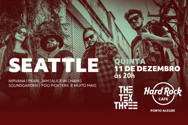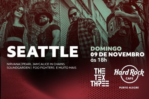 A banda The Tex Three apresenta um tributo inesquecível ao legado de Seattle, revivendo os clássicos de Nirvana, Pearl Jam, Alice in Chains, Soundgarden, Foo Fighters, Audioslave, Rage Against The Machine, entre outras bandas que marcaram gerações.
