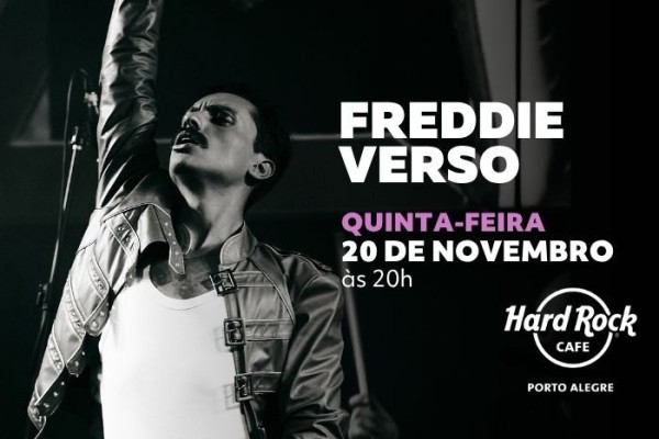 Prepare-se para um espetáculo no Hard Rock Cafe Porto Alegre com Freddie Verso no Tributo a Freddie Mercury! Uma noite inesquecível, com interpretações impecáveis e muito carisma, revivendo os maiores sucessos do Queen em uma atmosfera única que só o Hard Rock Cafe Porto Alegre proporciona.