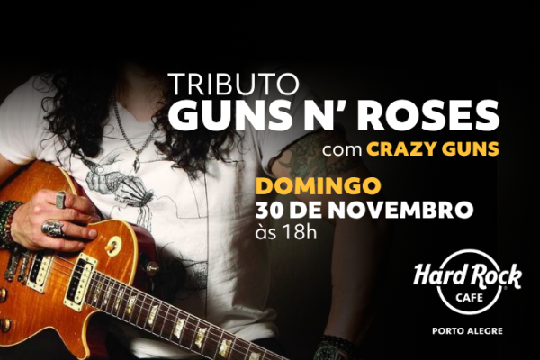 O Hard Rock Cafe Porto Alegre recebe Crazy Guns, em um tributo explosivo ao Guns N’ Roses, com toda a energia, atitude e os clássicos que marcaram gerações.